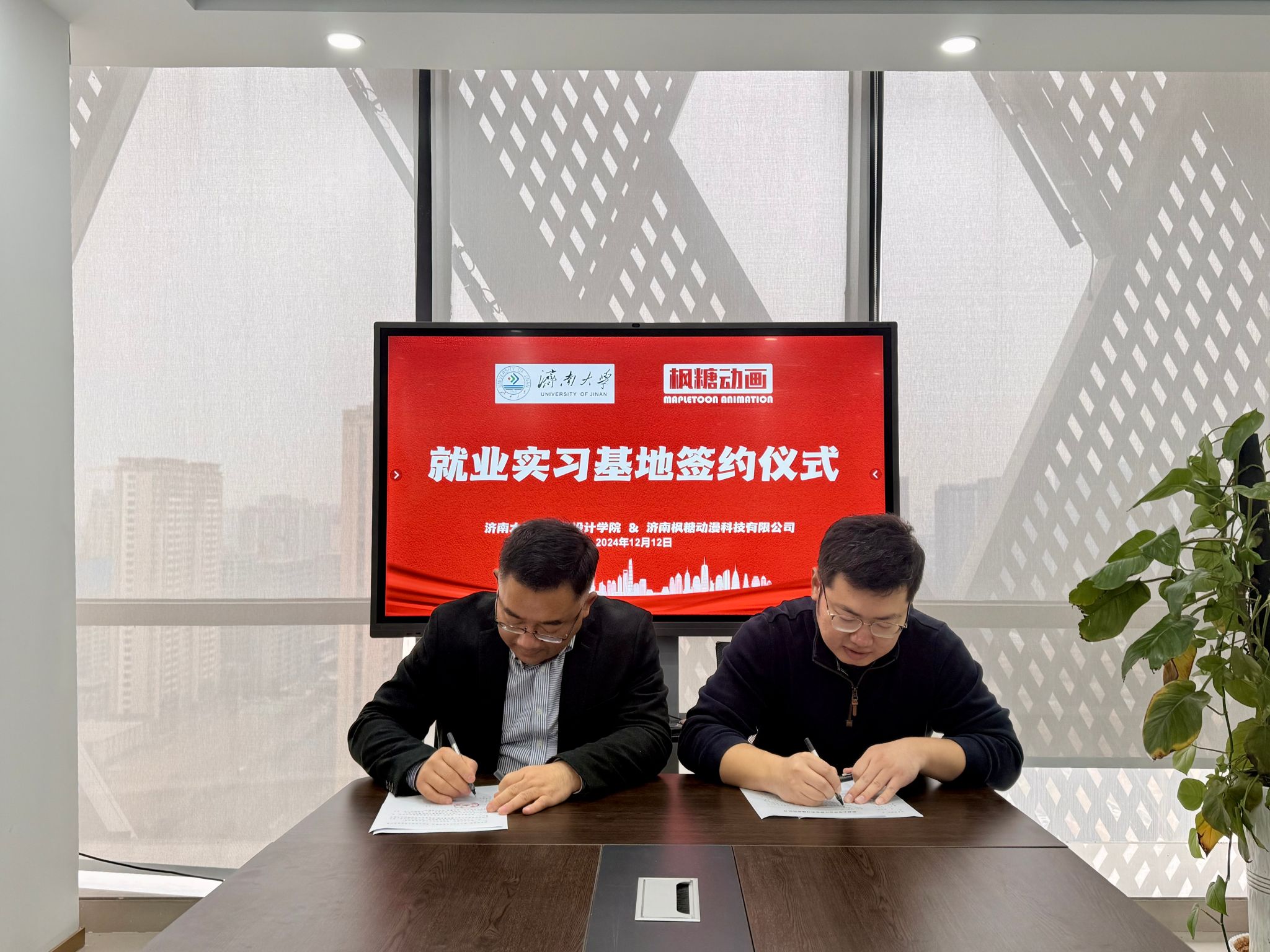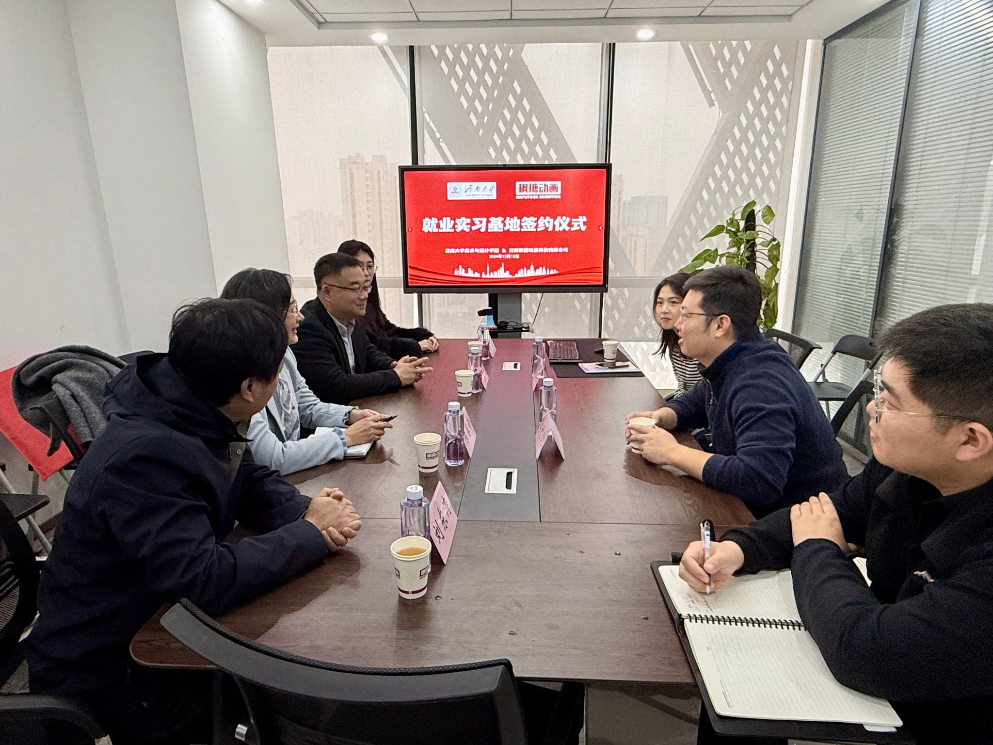 为贯彻落实党中央、国务院和省委、省政府关于做好高校毕业生就业工作的决策部署,加强校企交流,持续深入做好学院2025届毕业生就业促进工作,12月12日上午,437ccm必赢国际一行赴济南枫糖动漫科技有限公司开展访企拓岗暨产学研合作交流活动。济南枫糖动漫科技有限公司经理李利剑、动画制片人黄欣婷及相关部门负责人,437ccm必赢国际党委书记陈春锋,党委副书记、副院长何贵亮及教师代表参加活动。
