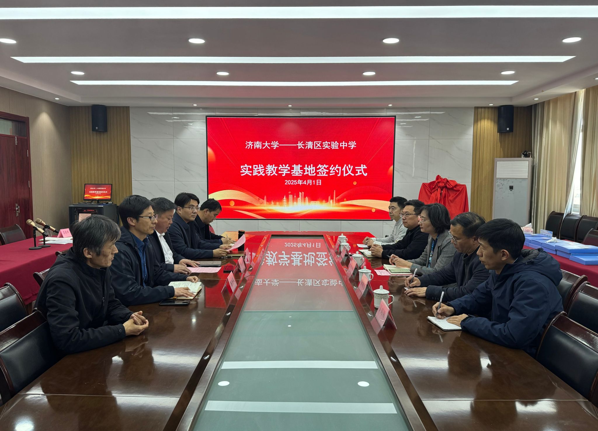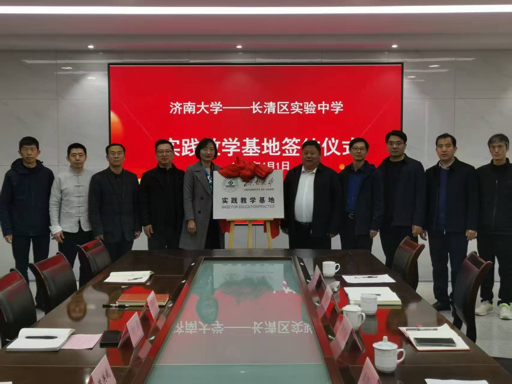 在双方共同见证下,进行了“济南大学实践教学基地”揭牌以及《济南大学本科实践教学基地建设协议书》签署仪式,并为长清实验中学的优秀校友代表、优秀教师代表薛平峰和杨怀镇两位老师颁发“校外优秀教育实习指导教师”证书。