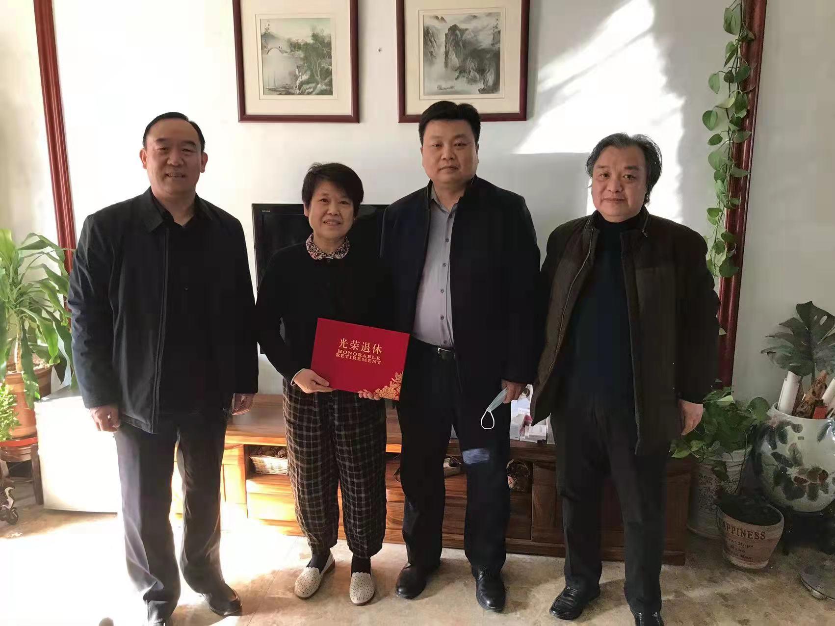 2021年11月26日,学院领导孙成豪、陶国平、刘军和学院办公室主任周杨一同走访慰问退休老教师迟瑞芹,代表学院全体师生致以诚挚的问候,并为迟老师带去了退休证、光荣退休证书等物品,让退休教师充分感受到学校的关怀和集体的温暖。