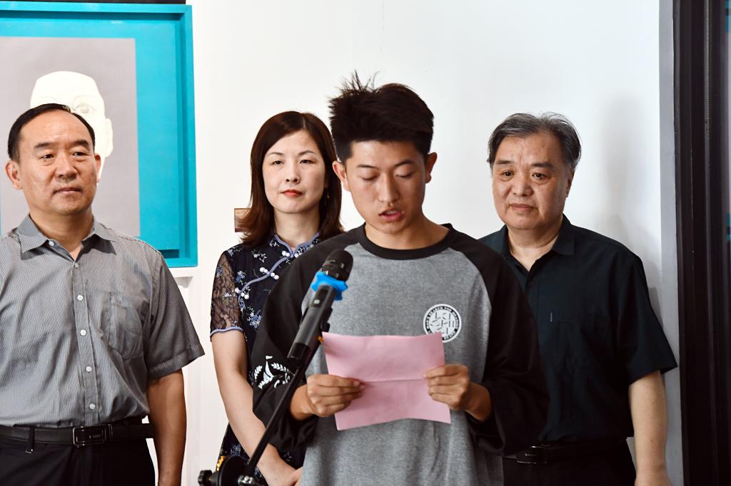 丁奕翔代表美术学院指导教师致辞。他对2023届毕业生在创作期间展现出的勤奋努力和艺术才华给予高度赞扬。希望同学们保持对艺术的执着,奔赴山海,不负热爱。预祝同学们前程似锦,也预祝学校学院今后结出更多的硕果。国画1901班傅积璞作为毕业生代表发言,讲述了毕业创作积累、沉淀、尝试、诞生的故事,对学校学院以及各位老师的四年悉心栽培表示衷心感谢。
