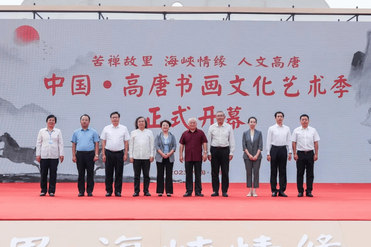 文化和旅游部人才中心原党委书记、中国国际书画艺术研究会名誉会长赵树栋,聊城市副市长马卫红,济南大学党委常委、副校长张勇,济南大学客座教授、山东省美术家协会荣誉主席张望,聊城市文旅局党组书记、局长周江涛,高唐县委书记杨新胜,县委副书记、县长杨曙光等共同启动艺术季开幕。