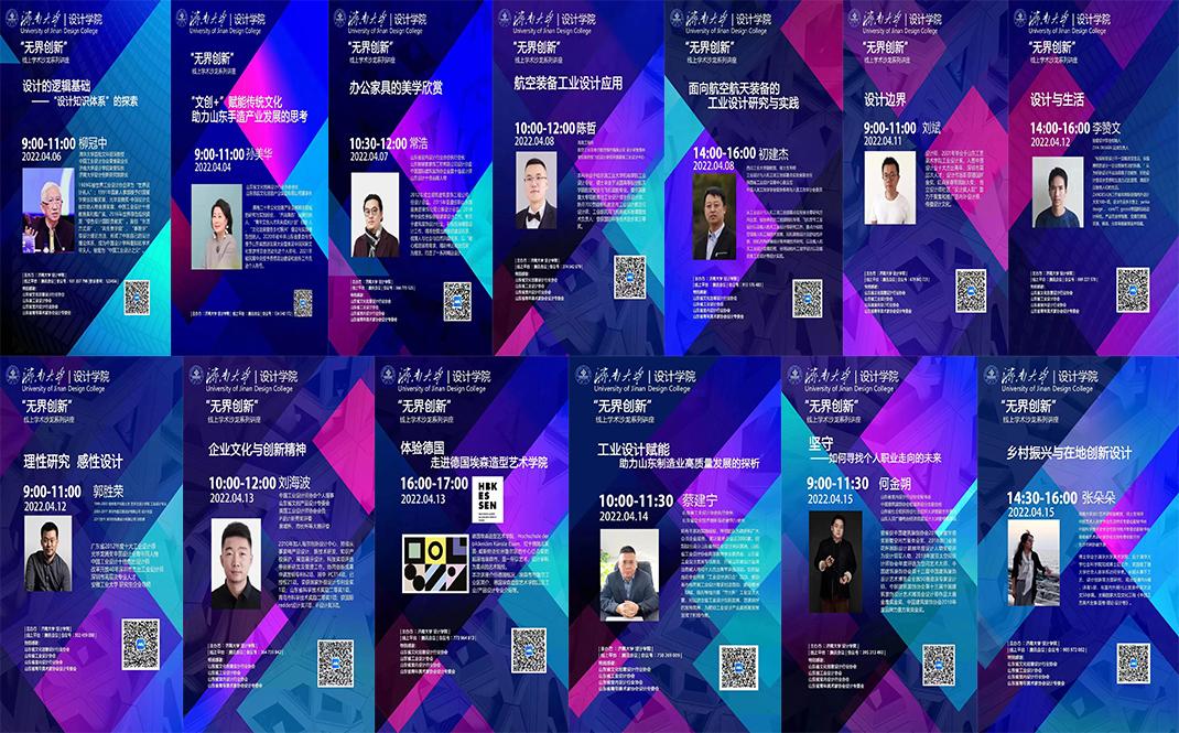 清华大学文科资深教授、济南大学设计学院荣誉院长柳冠中讲座引用设计方法论以“从宏观角度分析工业设计目前存在的问题及其发展”为中心展开论述,指出设计师要贴近生活,研究社会真正的需求和目的,引导设计行业健康发展。山东省文化创意设计行业协会孙美华会长、山东省室内设计行业协会常浩会长、山东省工业设计协会蔡建宁会长、省室内设计行业协会何金朔秘书长等从协会的角度为师生们解读了行业发展现状、发展趋势以及从业经验建议;企业界知名设计师刘海波、郭胜荣、刘斌、陈哲、魏民、李赞文介绍了丰富的企业设计方法与案例;西北工业大学初建杰副教授就航空航天领域工业设计科研与运用做了深入介绍,湖南大学张朵朵副教授就乡村振兴与在地创新设计做了深入介绍,设计学院毛剑秋副教授就设计心理学的相关科研做了深入的介绍。优秀校友陶传伟、于冬分别分享了创业经历以及读研科研经历,与同学们进行了深入线上座谈交流。学院副院长杨海波、院长助理桑曙光及工业设计系主任林昇积极组织策划并广泛宣传、参与对话、交流,同时结合学院本科教学、基地建设搞了一系列丰富的线上展示活动。广大同学踊跃参加,众多校外相关院校师生、设计行业从业人员参与讲座交流。