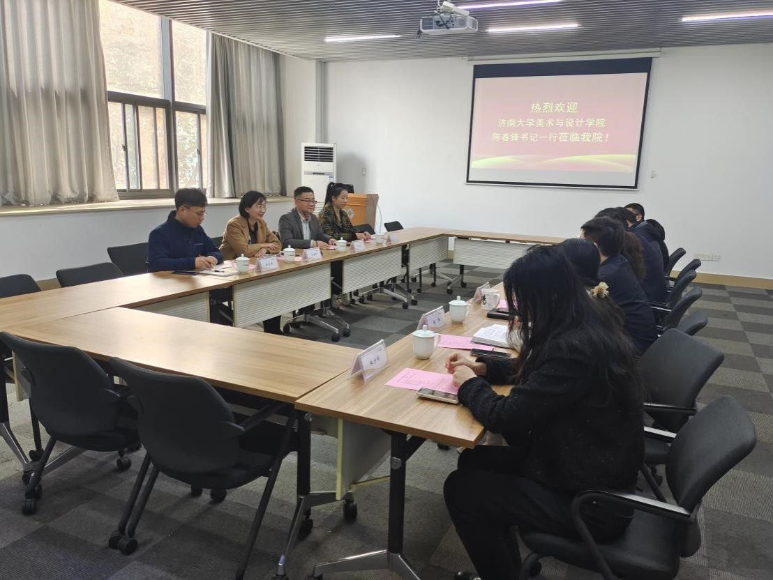 11月24日下午,一行人到访南京工业大学艺术设计学院。南京工业大学艺术设计学院党委书记周静、院长钱才云、副院长吴海红、院长助理钱凤德和各科室负责人参加了活动。周静对陈春锋一行表示热烈欢迎,钱才云院长从学科专业、人才培养、师生概况、学术交流等方面介绍了南京工业大学艺术设计学院的整体概况。陈春锋简要介绍了济南大学及437ccm必赢国际的情况,对其环境设计专业成功入选2021年度国家级一流本科专业建设点表示祝贺,希望以本次活动为契机,加强交流合作,共谋发展。双方从人才培养、党建工作、学科建设、师资力量、共青团工作等多个方面进行了深入交流。