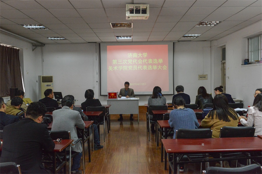 4月13日下午,美术学院党委召开全体党员大会,差额选举产生出席济南大学第三次党代会的代表。学院党委书记夏卫东主持会议。