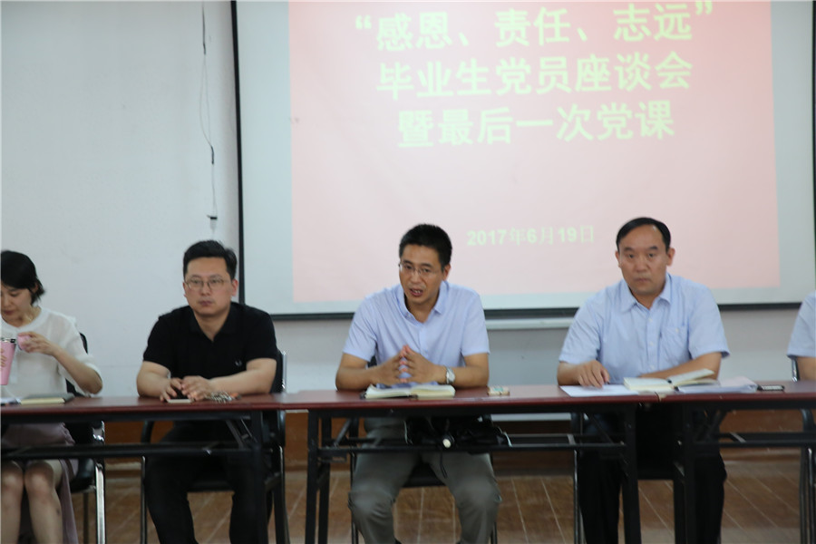 6月19号下午3点由美术学院举办的“感恩、责任、志远”毕业生党员座谈会暨最后一次党课在四教6楼会议室举行。美术学院党委书记夏卫东、党委副书记刘军出席会议并讲话。辅导员田涛老师、李健慧老师以及学院全体学生党员出席会议。会议由辅导员信苏珊老师主持。