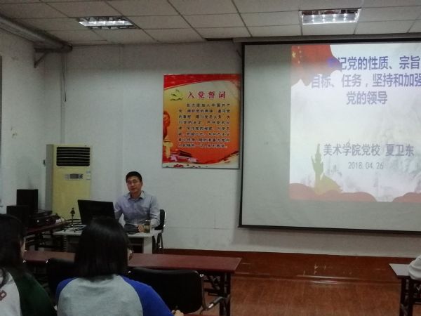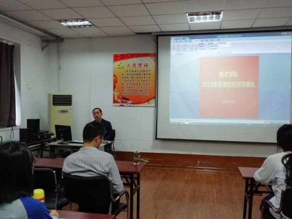 4月26日,美术学院2018春季党校开课仪式于美术学院党员活动室拉开帷幕。学院党委书记夏卫东、副书记刘军、学工人员及全体入党积极分子参与了开班仪式。仪式有刘军书记主持。