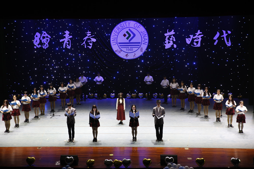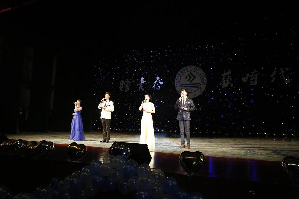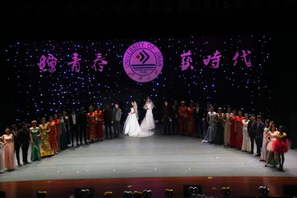 12月18日晚,由美术学院团委主办的美术学院2015年“绘青春,艺时代”文艺晚会在大礼堂顺利举行,济南大学招生办公室主任杨丽颖、美术学院相关领导及800余名师生参加并观看文艺晚会。 晚会在一首清新的歌曲与舞蹈串烧中正式拉开帷幕。闪光灯将整个舞台照得如同梦幻一般,使现场观众迅速融入到了晚会的欢快气氛当中。随后,主持人闪亮登场,晚会正式开始。经过主持人简短的介绍之后,校园十佳歌手李小静、刘理业的《小幸运》《Lemon tree》,舞蹈串烧《玻璃珠》,朗诵《家》,小品《我好烦》等同学们精心准备的节目闪亮登场。精彩的节目为观众呈现了丰盛的视听盛宴,还有美轮美奂服装走秀,一件件靓丽的服装,加上同学们自信大方的表现,即使在天气寒冷的冬夜,却让人因为他们的表演由心底产生一丝暖意,并将晚会带入高潮。最后,晚会在所有演员共同演唱的《相亲相爱》中落下了帷幕。此次演出,充分向学院领导展现了学子们多才多艺、自信昂扬的风采,激起在座同学们的阵阵掌声,掌声经久不息。
