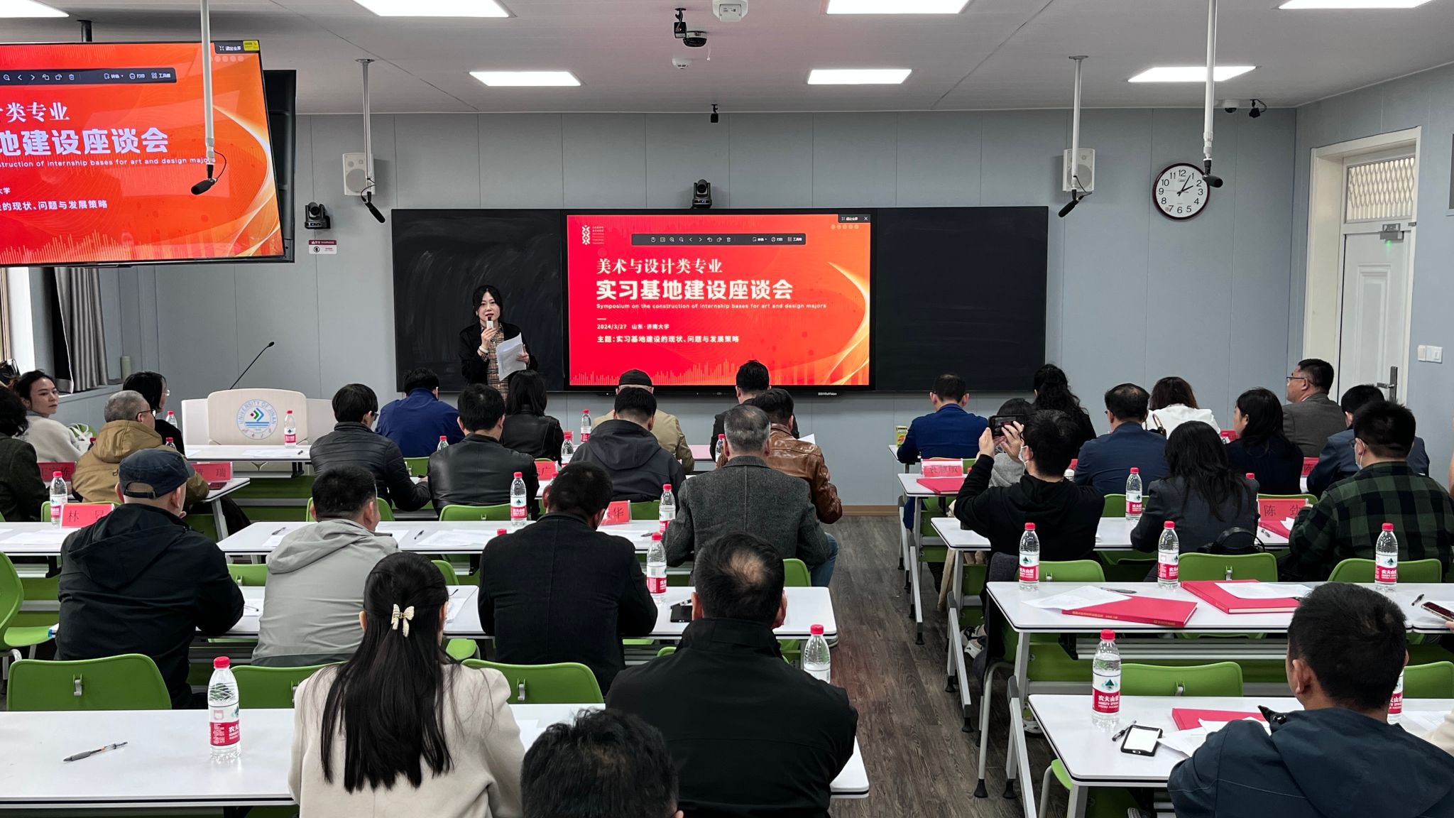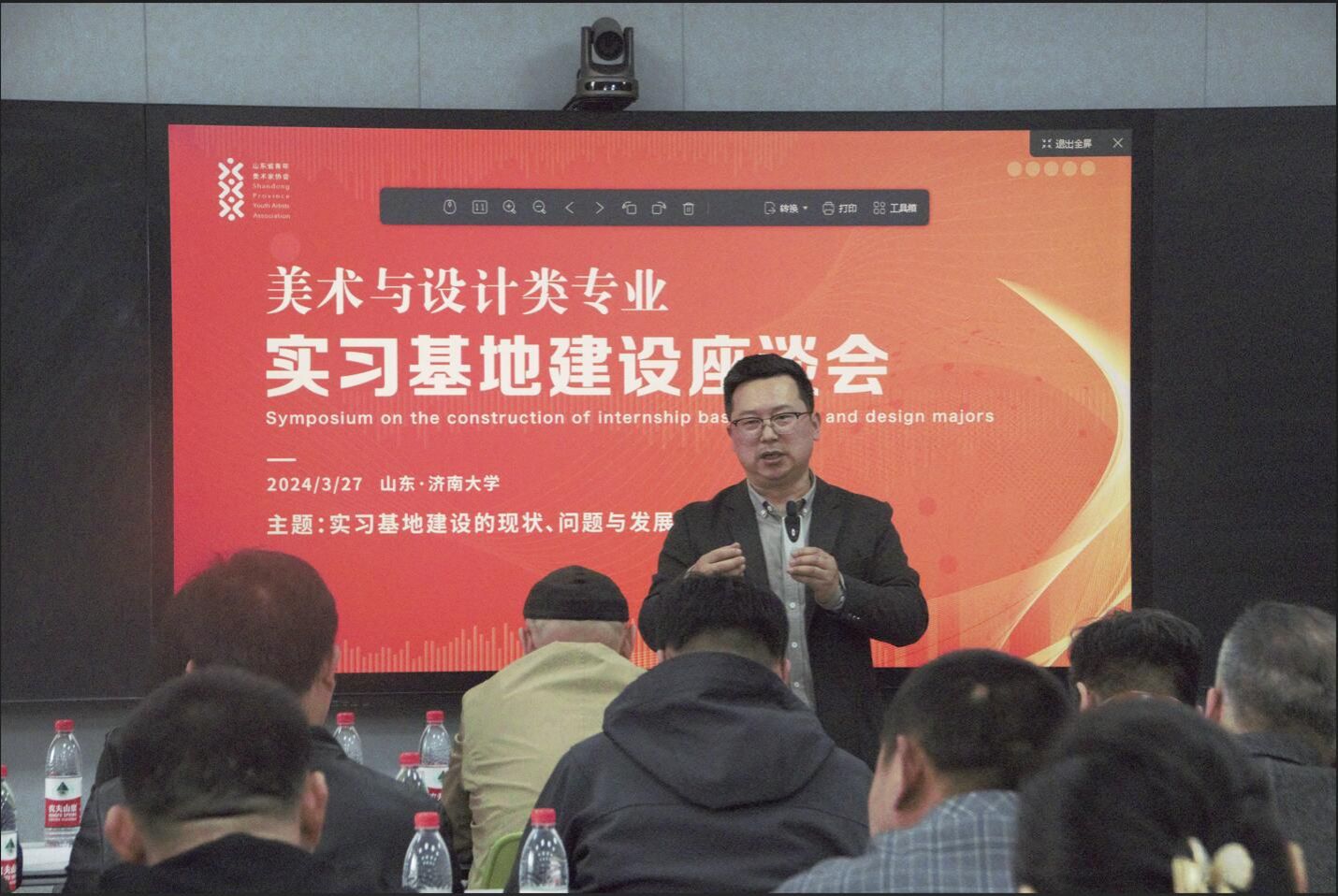 3月27日,由山东省青年美术协会和437ccm必赢国际指导,9家企业联合举办的“美术与设计类专业实习基地建设座谈会”在我院举行。此次座谈会旨在推动美术与设计学科的跨院校跨地域交流,通过创新要素优化配置加速激活新质生产力,促进学生实习就业,提升专业人才培养质量,促进学校、企业、社会多方合作、多维赋能。来自齐鲁工业大学、山东财经大学、临沂大学、山东艺术学院、山东工艺美术学院、齐鲁师范学院、山东青年政治学院、山东女子学院、泰山学院、青岛酒店管理学院的专家、437ccm必赢国际领导班子、各科室负责人和学生代表参加了座谈会。山东省青年美术协会理论委员会秘书长张嫣格博士主持座谈会。