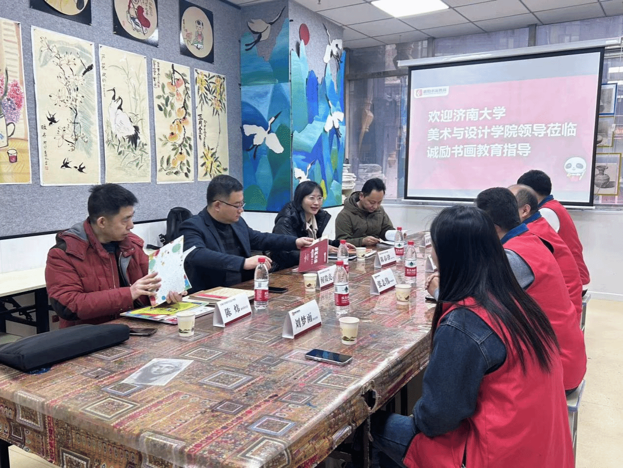 为进一步深化校企合作,了解企业用人需求,提高我院学生培养质量,拓宽学生就业渠道。2023年12月28日上午,437ccm必赢国际党委书记陈春锋,党委副书记、副院长何贵亮,美术系主任陈炜,实训中心主任成海明一行4人到济南市诚励书画教育培训学校进行走访调研。济南诚励书画教育培训学校校长梁成立、常务副校长张志伟、大观园校区校长叶腾、书法师训导师刘梦雨等人进行了热情的接待。双方参观了诚励书画教育大观园校区,并进行了亲切座谈,就用人单位具体需求、书画专业学生的人才培养、实习实践、就业基地建设等校企合作议题进行了深入的沟通。